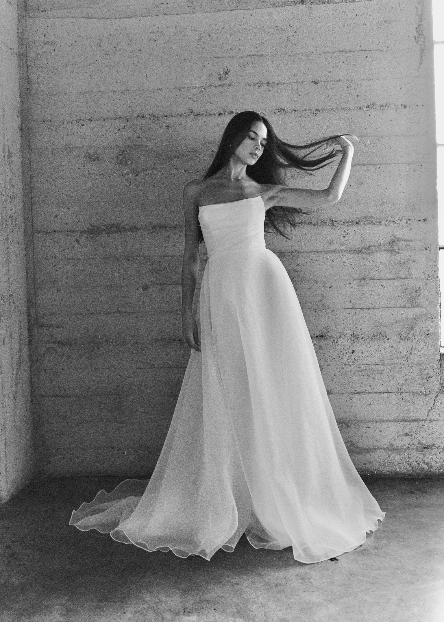 The minimal yet sophisticated aesthetic of the NEWHITE collection is drawn from the designer’s love for architecture. She also draws inspiration from the effortless Californian lifestyle and urban spirit of New York City to create a fashion-forward yet understated bridal collection for modern women.